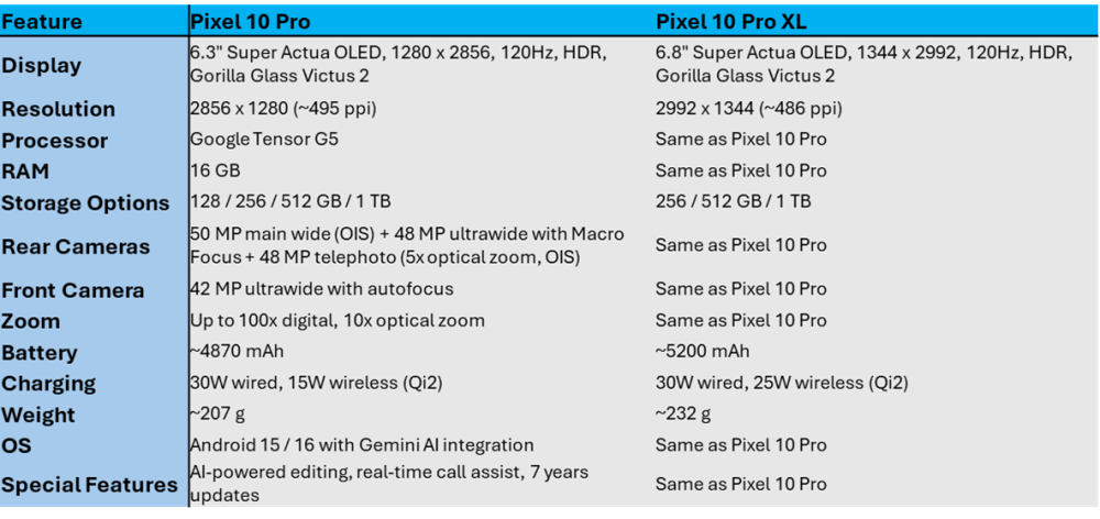 📱 Pixel 10 Pro vs Pixel 10 Pro XL