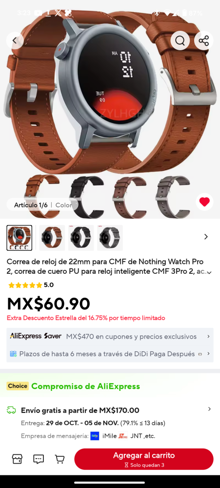 MX$60.90 | Correa de reloj de 22mm para CMF de Nothing Watch Pro 2, correa de cuero PU para reloj inteligente CMF 3Pro 2, accesorios de pulsera