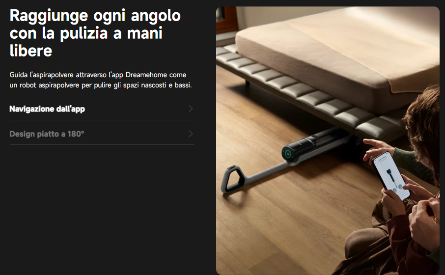 manual guidance from the app when laid flat, for example to reach under beds without kneeling