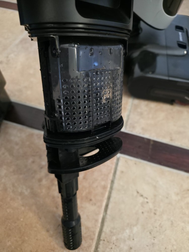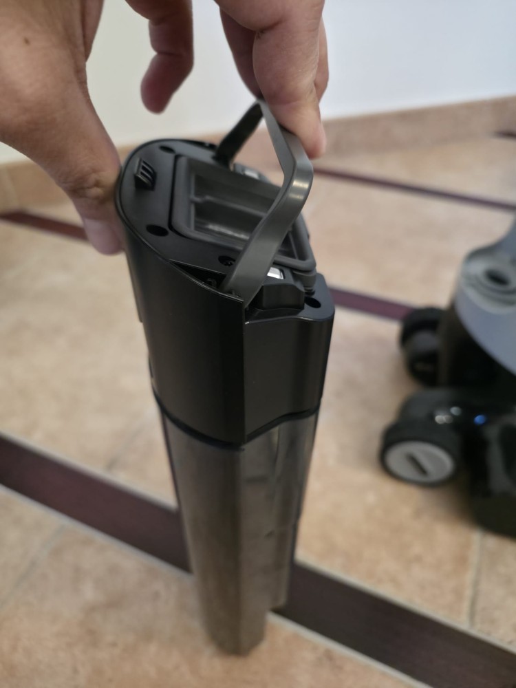 The full 180° tilt capability allows cleaning under low furniture, with a flat height of about 14 cm. Even in a fully horizontal position, it maintains effective suction, losing only some maximum dirty-water tank capacity, which drops from 650 ml to 400 ml when laid flat. It is naturally equipped with a liquid/solid separator.