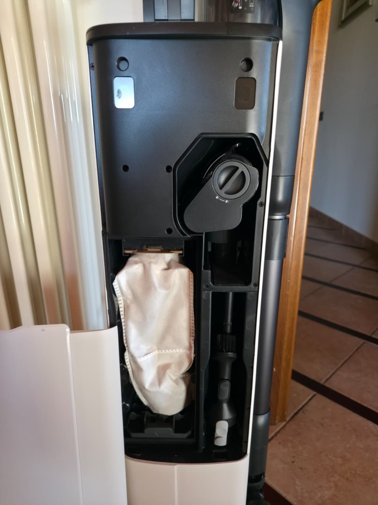 The most interesting point, however, is post-cleaning management: automatic emptying into a sealed bag greatly reduces contact with fur and dust, limiting the typical “dust cloud” effect of manual emptying. Here, the presence of fine filtration and a separation system further helps on the allergen side, because the goal isn’t just to collect dirt, but also to avoid putting it back into circulation.