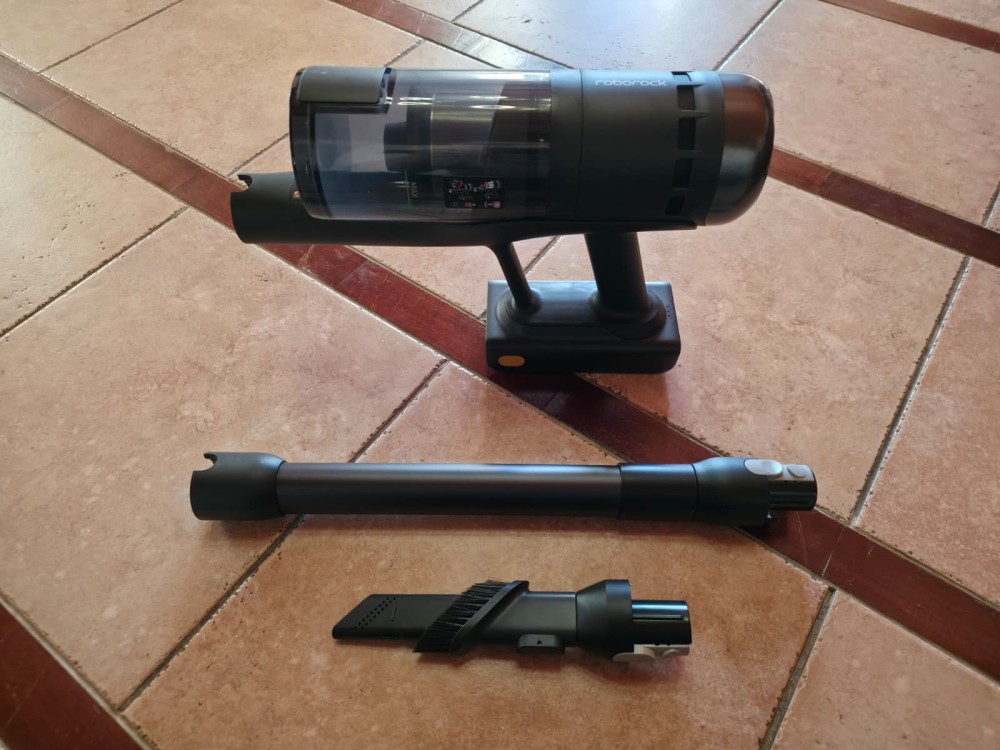 There’s another technology here that’s worth a closer look: Roborock calls it JawScrapers Hybrid. It’s a hybrid brush that combines a shark-tooth design with an integrated V-shaped fiber and rubber roller. The idea is that hair and pet fur are captured, guided, and separated during rotation, reducing tangles. This is one of the things that convinced me the most, because I never found hair or fur wrapped around the roller. And it’s exactly the kind of detail that changes the experience: a cordless vacuum may clean well, but if every couple of sessions you have to cut hair off the roller, your desire to use it quickly fades.