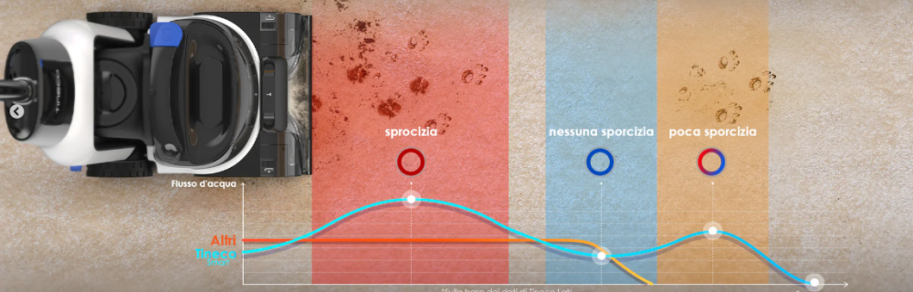 The iLoop Smart Sensor technology is an intelligent dirt-level detection system integrated into the machine. Unlike “manual” products that require continuous user adjustments, iLoop analyzes in real time the amount of debris, dust, and stains present in the carpet and automatically adapts suction power and solution flow to provide more effective, targeted cleaning. The principle behind it is simple yet effective: while you move the machine, sensors read the condition of the fabric and modulate motor behavior and solution distribution without any manual intervention. This means that in very dirty areas, the machine increases intensity to remove more dirt, while in already clean areas it reduces intervention to avoid waste. The result is more precise, efficient, and adaptive cleaning, with fewer unnecessary passes and performance optimized to the actual condition of the carpet. In simple terms, iLoop transforms the Carpet One Cruiser from a simple carpet-cleaning machine into an intelligent device that interprets the carpet’s cleaning needs and adjusts itself to achieve the best possible result with minimal effort and no waste.