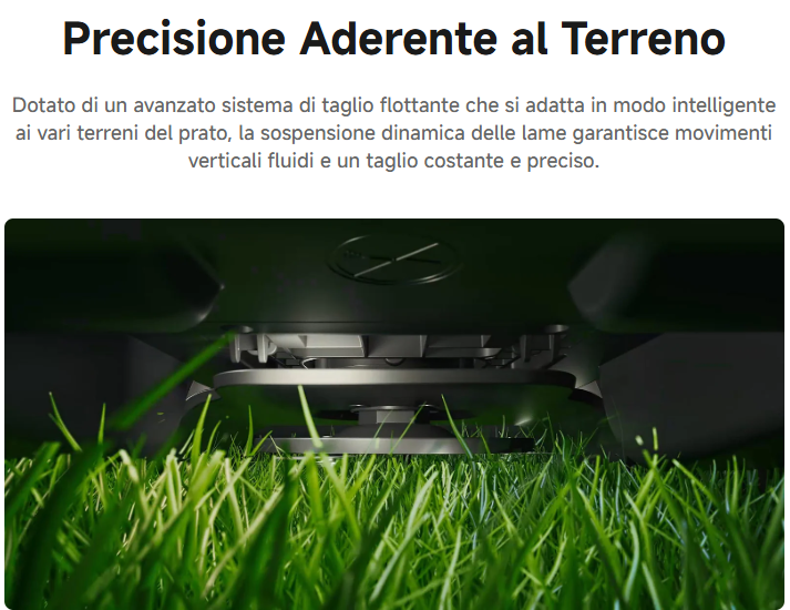 This approach has two concrete advantages. On one hand, the robot can maneuver more precisely in confined spaces, reducing the micro-corrections and repeated maneuvers often seen in rear-wheel-drive models. On the other, force distribution limits wheel slippage on the grass, resulting in a noticeably gentler impact on the lawn, especially during steering or restarting.