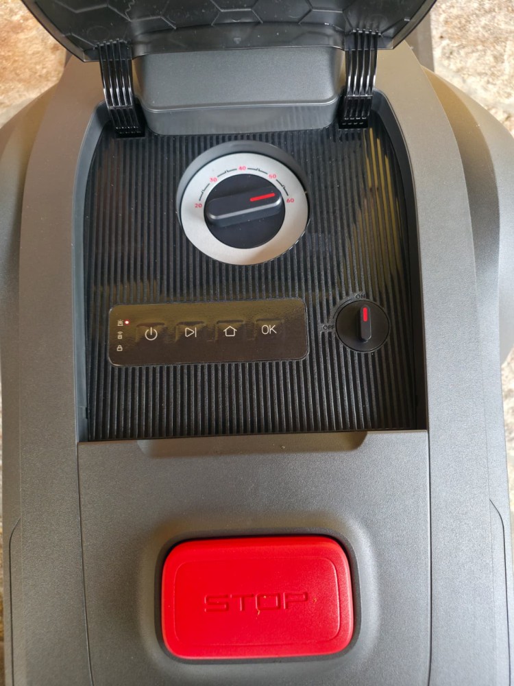 A design detail that becomes especially evident in daily use is the choice of off-road wheels combined with front-wheel drive, a less common but particularly sensible solution. Having traction at the front improves the robot’s ability to “pull itself out” of critical situations such as narrow passages, tight turns, or areas where the lawn meets rigid edges or changes in slope.