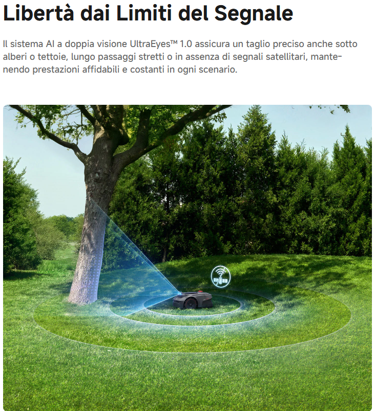 This behavior is not the result of a single element, but of the balance between vision, traction, and intelligent motion management. This is why the robot rarely gets stuck and manages to cover the entire area even in gardens that are not perfectly regular.