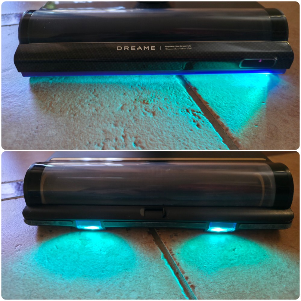 We’re not talking about simple combs here. TangleCut™ uses motorized teeth and scrapers that cut hair and pet fur during roller rotation. The result is fewer hairs wrapped around, less manual maintenance, and a roller that stays cleaner and more efficient over time. You can see the result in the bin too: instead of long tangled spirals, you get shorter fragments, far less likely to jam the roller or require frequent manual intervention. There’s a slight extra noise, similar to an electric razor, but it’s a more than acceptable trade-off for the effectiveness achieved. CelesTect™ lighting on this brush: the light is effective but with a narrower and more angled beam, being positioned low and to the side probably to leave space for the mechanical arm.
