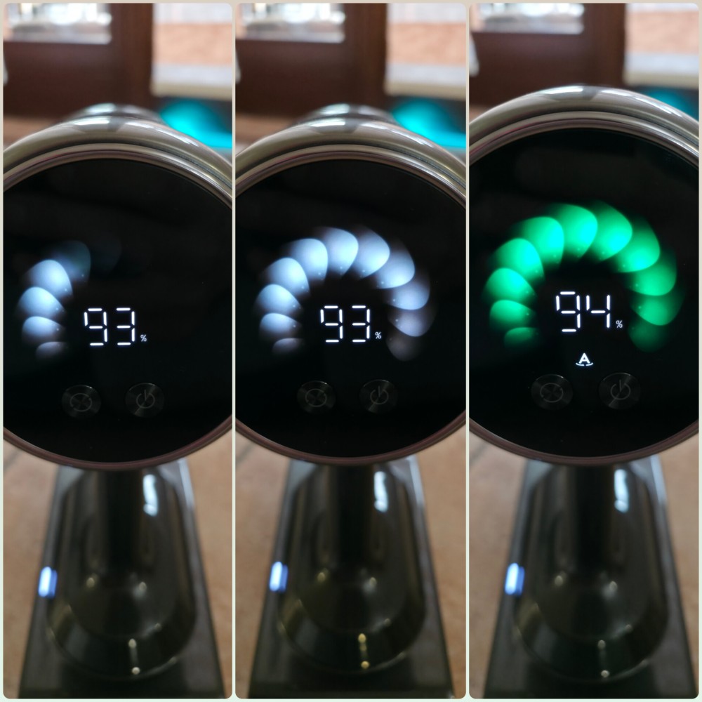 The circular display helps you “read” what’s happening, showing the detected dirt level with color variations (green → orange → red), but after a few days you stop looking at it. Because you trust it.