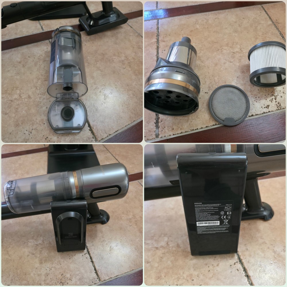 The Dreame V20 Pro-A adopts a 5-stage filtration system. According to the stated data, it can capture 99.99% of particles down to 0.1 μm, including fine dust, pollen and allergens. So it’s not only about floor cleaning, but also about the quality of the air returned to the room. Filtration works on multiple levels. The 12 cyclones carry out a first separation of larger particles, helping keep suction power stable even when the bin begins to fill. Then pre-filters and a final HEPA-type filter trap finer particles before air is released back into the room. This multi-level system protects the motor over time and reduces the dispersion of allergens into the air, making the V20 Pro-A suitable even for those who are more sensitive to dust. The dust bin has a 0.5-liter capacity. It’s a fairly common size in the compact cordless category, but it should be interpreted correctly. For regular maintenance and frequent cleaning it’s more than adequate. However, during more intense cleaning with lots of pet hair, it can fill up quite quickly. Hair, in fact, takes up a lot of volume and saturates the bin faster than fine dust alone. In these cases it may be necessary to empty it more often, even during a single particularly demanding cleaning session. Emptying is still simple: the bin detaches from the motor body without having to carry the whole vacuum with you, and the lower flap opening allows you to release the contents in a relatively clean way. Filters, bin and rollers are removable and washable without tools. Just rinse under running water and let them dry completely (ideally at least 24 hours) before reassembling. The TangleCut™ system also effectively reduces hair buildup around the roller, decreasing how often you need to intervene manually. Overall, filtration and maintenance are handled in a way that’s consistent with the product’s philosophy: no complicated solutions, but an effective, washable system designed to keep performance high over time without turning cleaning into an ongoing maintenance operation.