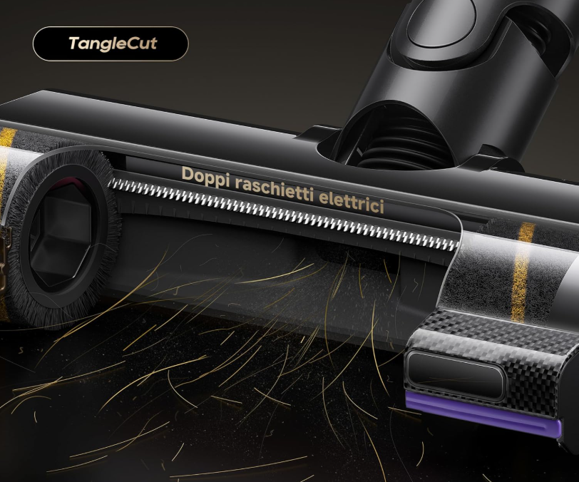 This is the most technologically advanced brush and it’s what makes the V20 Pro unique. Inside the tech: GapFree™ – 0 mm edge cleaning The GapFree™ system uses a front infrared sensor that detects the wall. Only when needed, a flexible front squeegee drops mechanically to seal the gap between floor and wall. In this way: dirt isn’t pushed into the corner but guided toward the brush, the airflow becomes more concentrated, increasing suction pressure in the front area for more effective dirt removal. It is, without exaggeration, the best edge-cleaning system I’ve ever seen on a cordless — precise, effective and smart, because it activates only where it’s needed and when it’s not needed the system remains inactive, keeping the head fluid and smooth-gliding