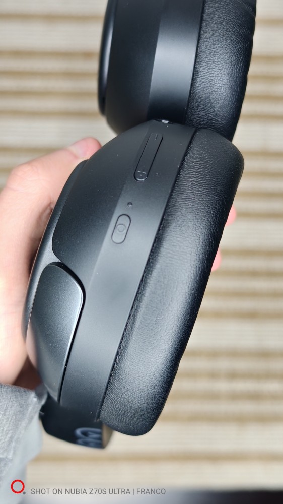 El plástico se siente correcto para el rango de precio, no premium, pero tampoco frágil. Las bisagras se sienten firmes y las copas giran lo suficiente para adaptarse bien a la cabeza.